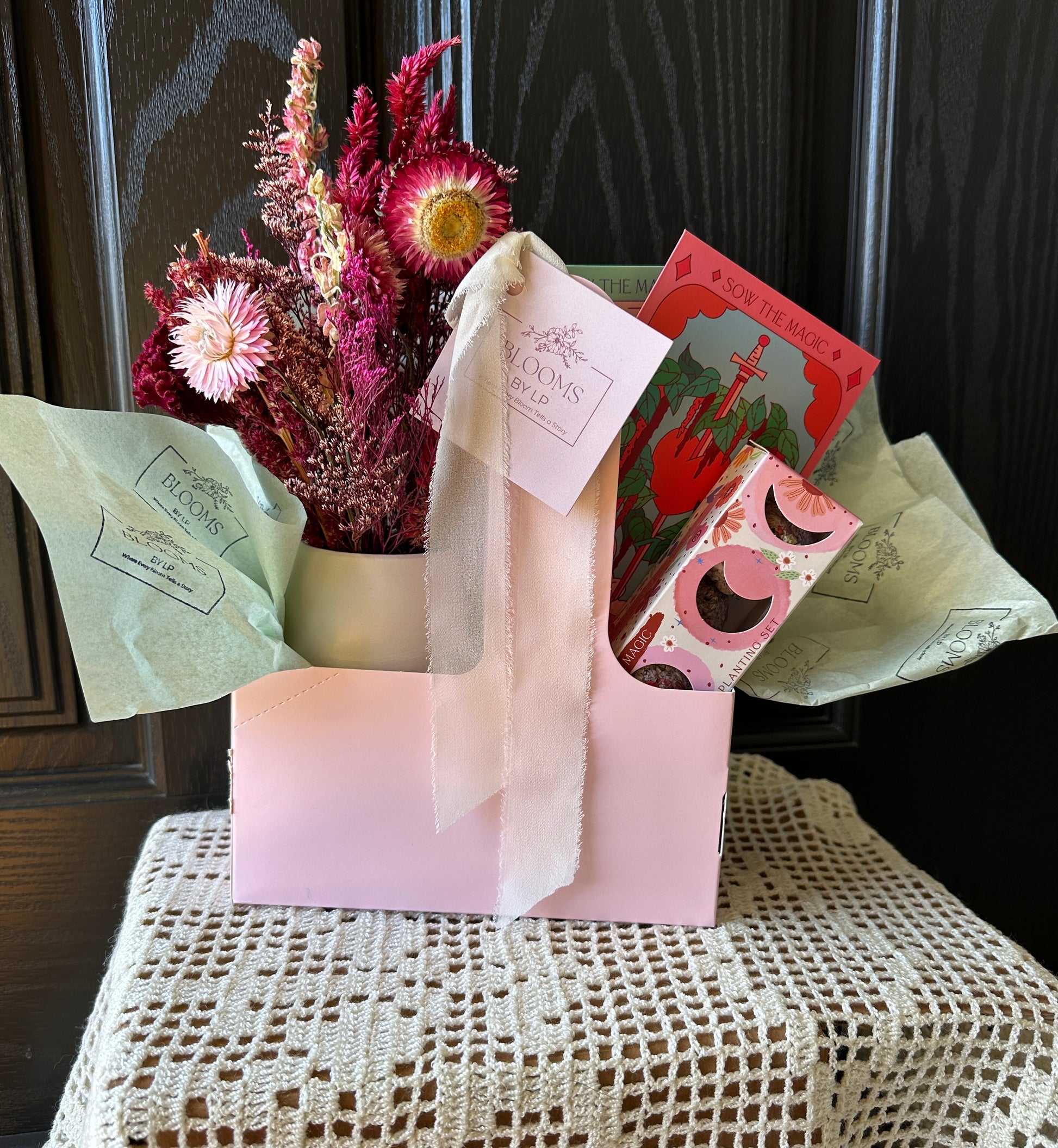Dried bud vase + moon phase wildflower seed planting set + lavender lover seeds + love lies bleeding seeds