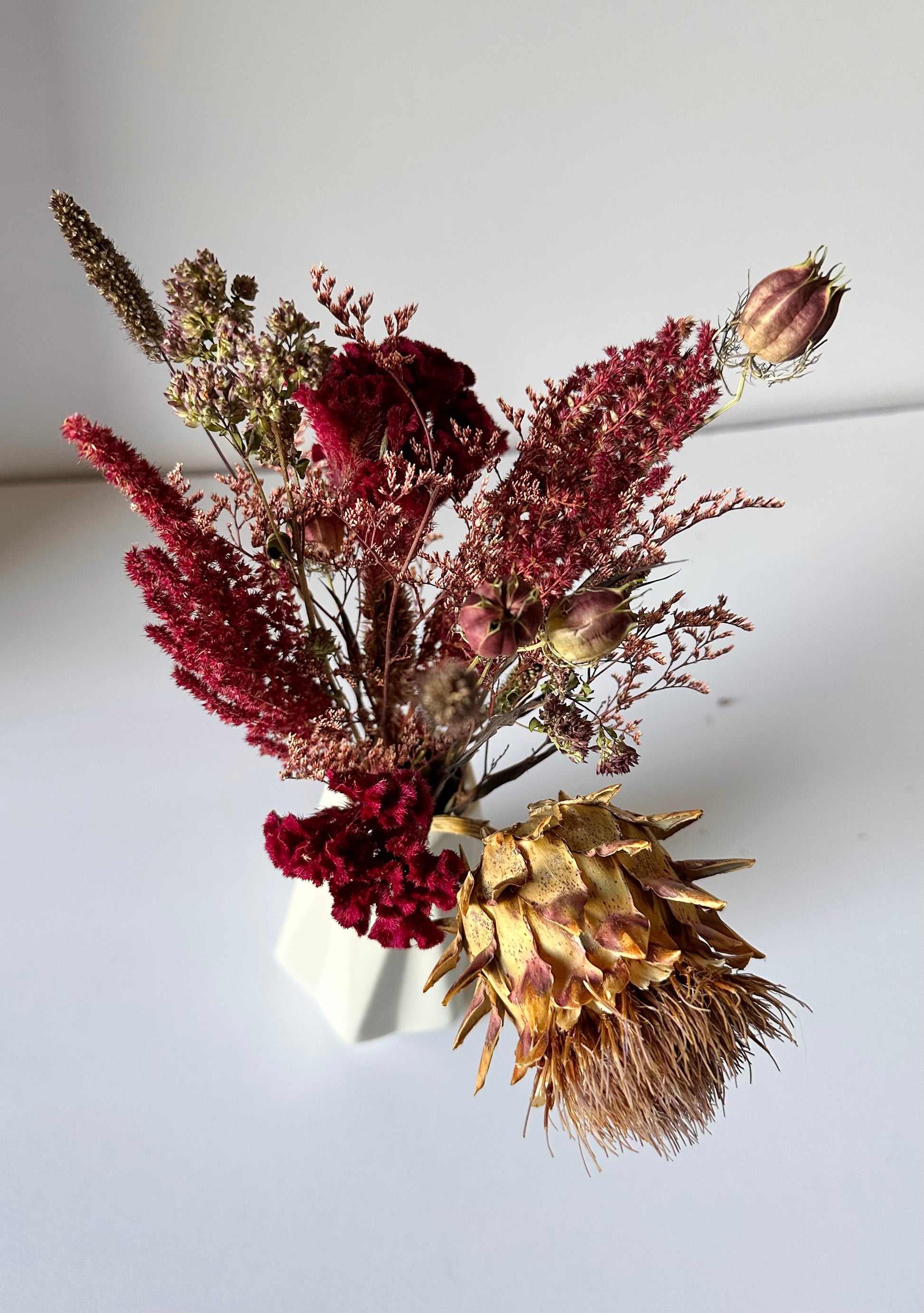 Dried Nigella Pods, Mini Red Jewel Grass, Celosia Cockscomb, Celosia Plume, Cardoon, Amaranth