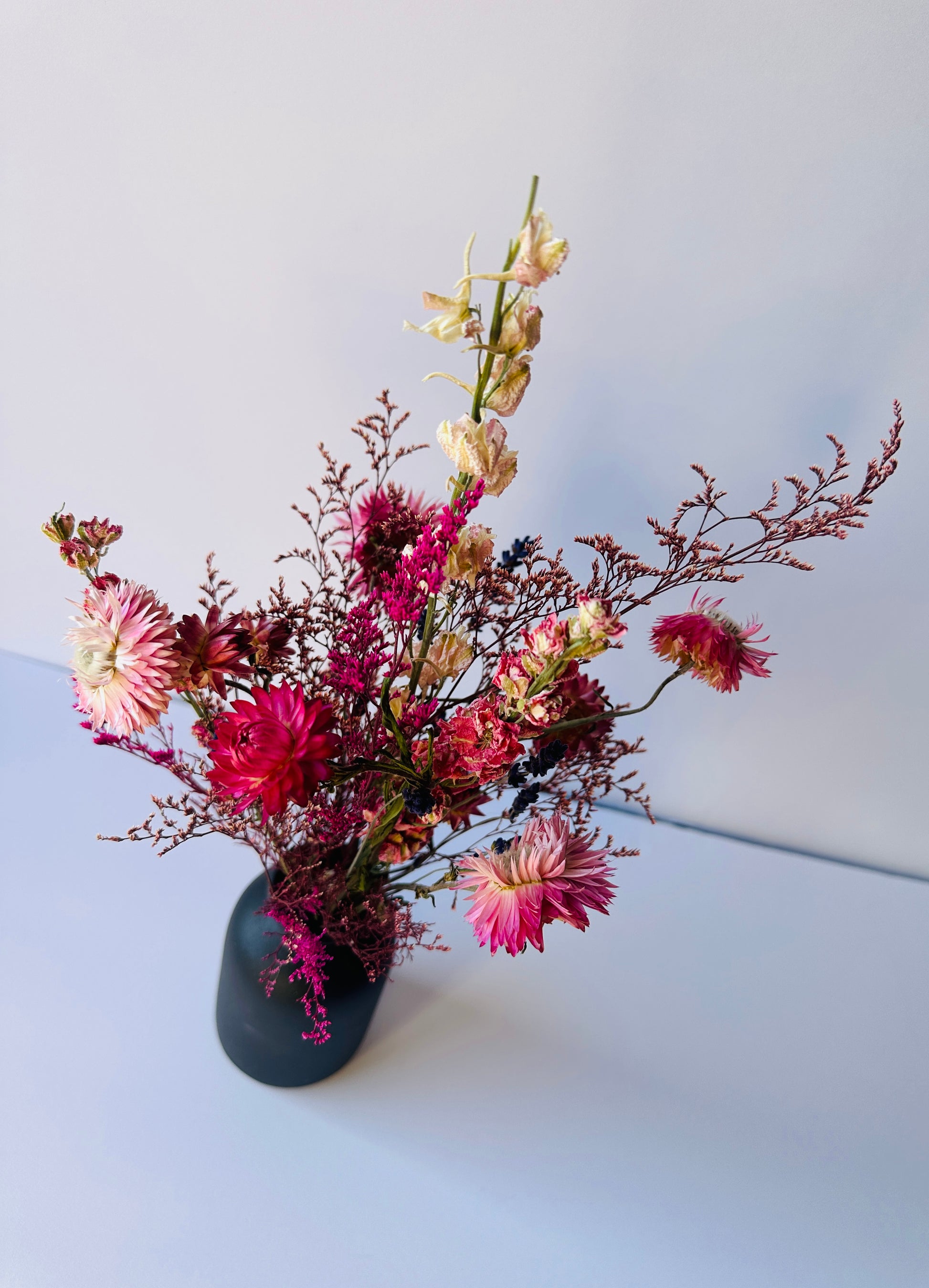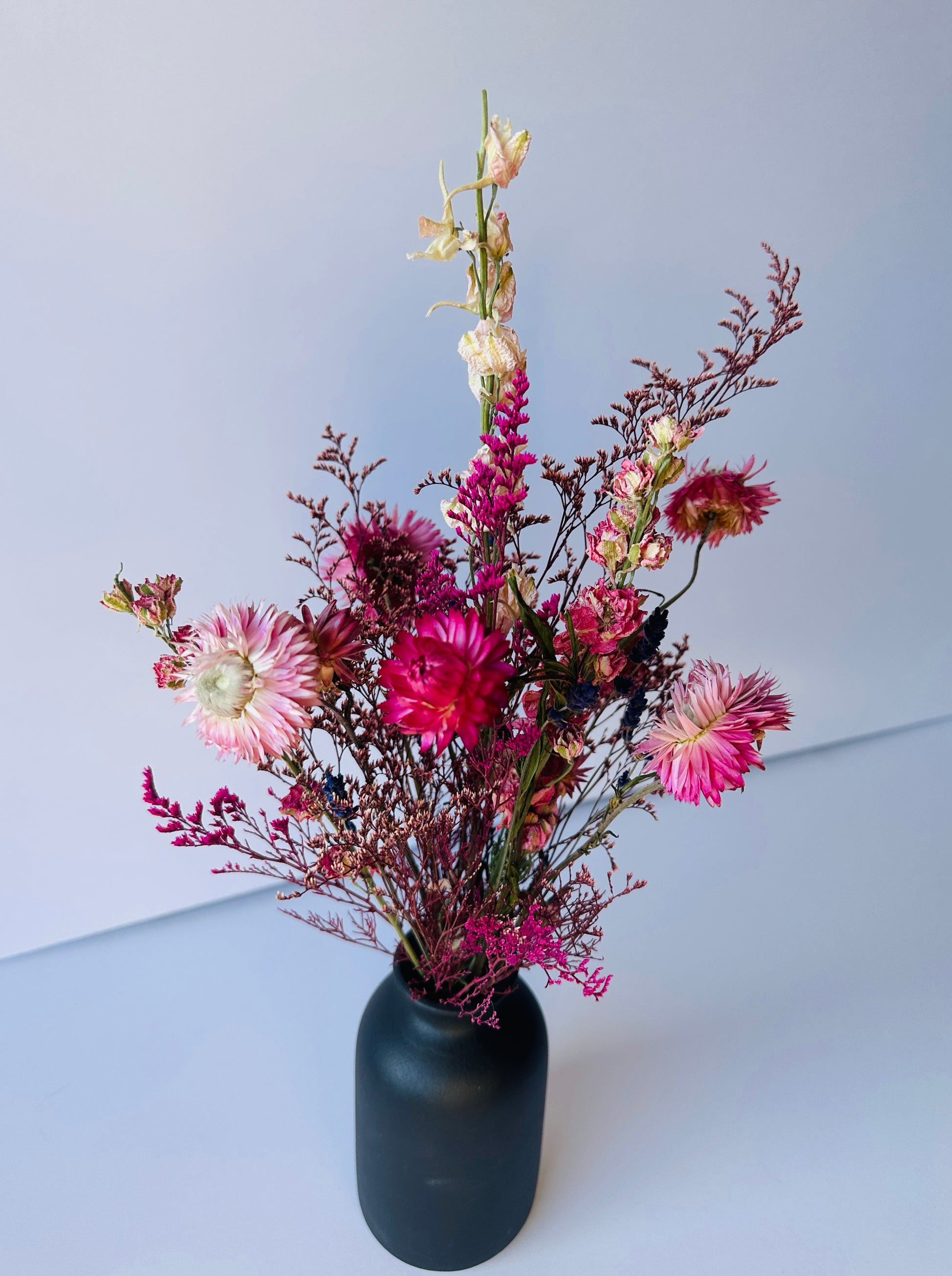 Gift your bestie or lover the ever lasting gift of dried flowers! Each vase includes a variety of straw flower, caspia and larkspur.