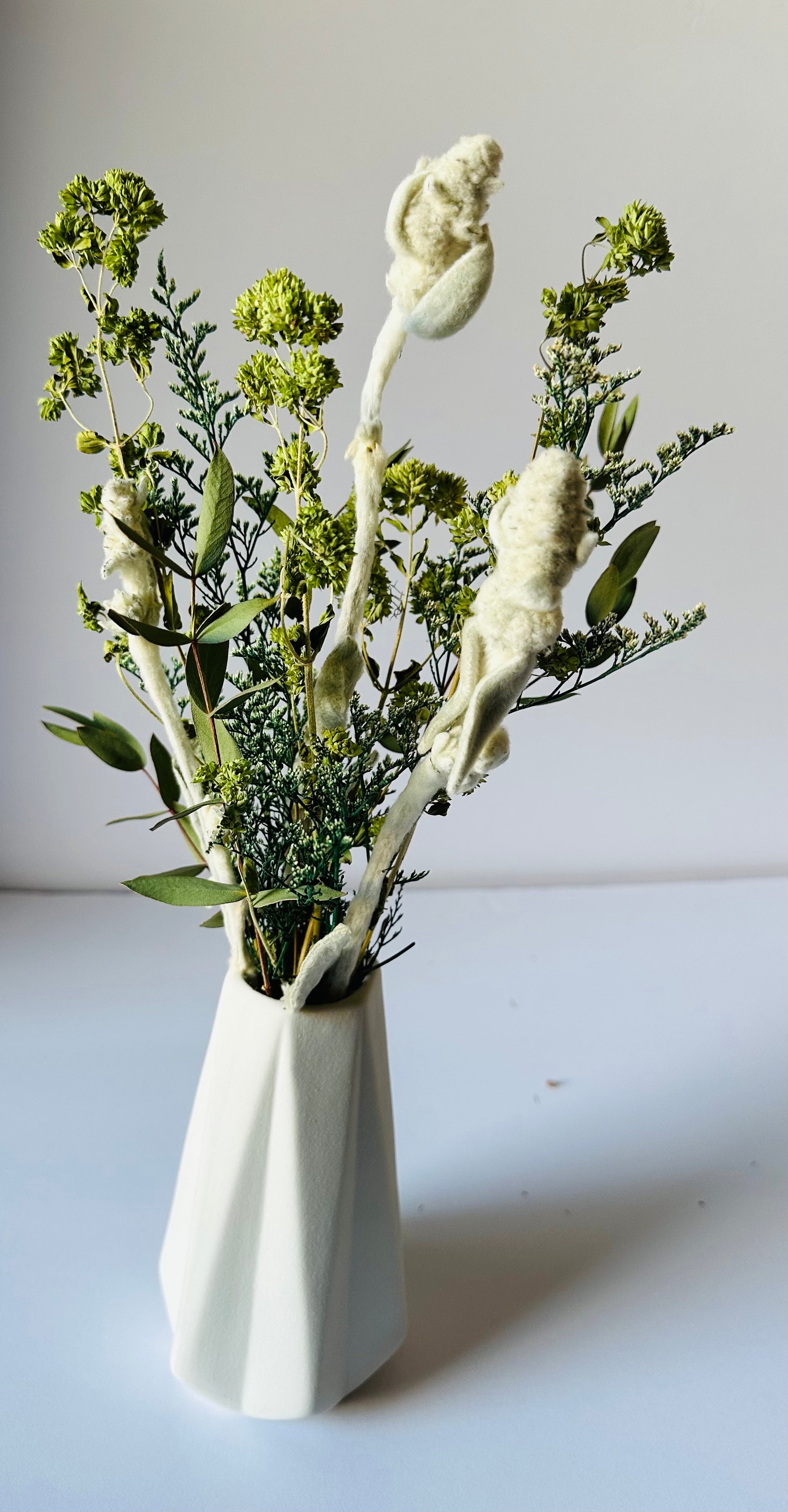 Dried caspia, woolly cotton ball, oregano, eucalyptus